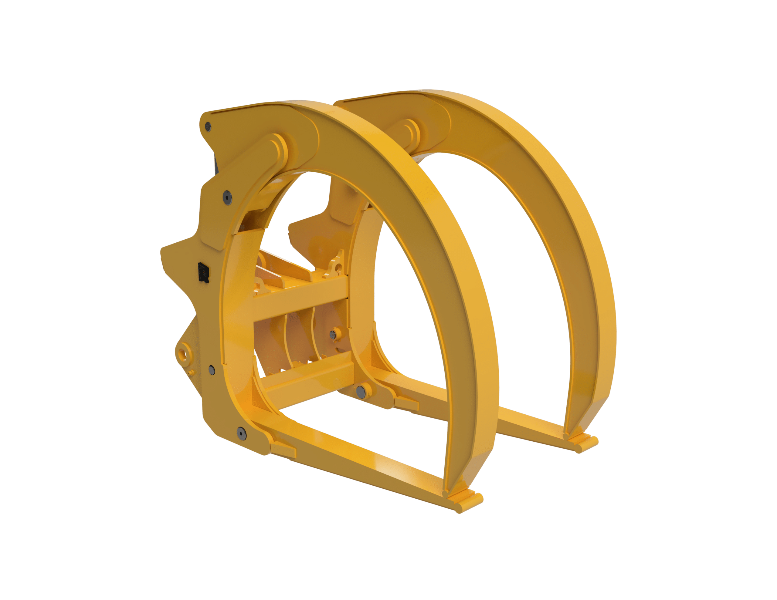 The Rockland Dual Clamp Peeler Grapple is the ideal attachment for demanding plywood and peeler applications. Engineered to withstand hard environments, its heavy-duty build guarantees unmatched durability and longevity. Thanks to its narrow frame design, maneuvering between log bunkers and conditioning vats has never been easier. Dual clamps securely hold a full load of peeler logs for easy transport. Equipped with hinged, easily replaceable tines, this grapple offers convenience and versatility on the jobsite. The dual-cushioned cylinders ensure reliable performance and provide years of dependable service.